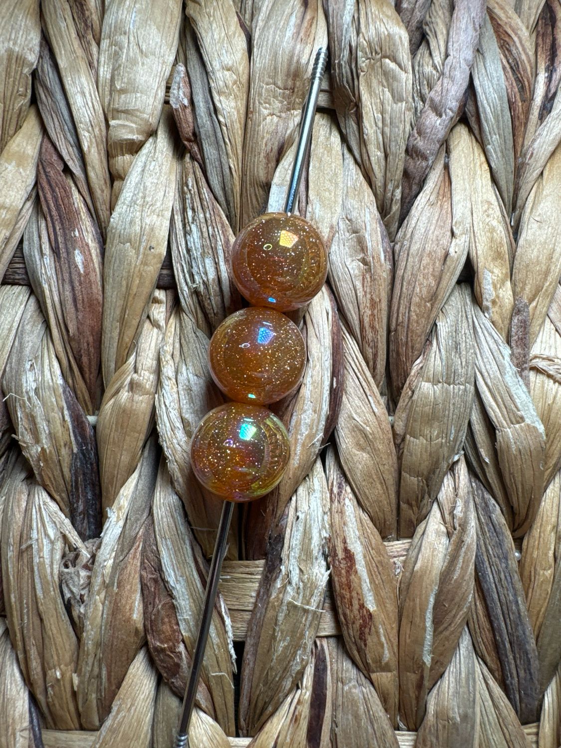 15mm Orange Glitter UV Beads